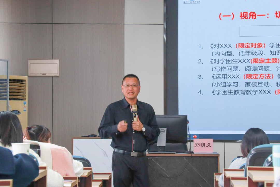 3月16日上午郑明义老师在《基于最近发展区的“三阶升级”校本研修温州实践与思考》讲座指导中,重点介绍了温州市中小学校本研修发展引领和管理工作思路,指出各校要从自身实际出发,走一条从“碎片化教研到项目制研修,再到课程研修,进一步提升为基地研修”的“三阶升级”思路,并具体介绍了校本研修项目方案设计和校本研修精品课程建设规范要求及文本撰写建议。最后,郑老师根据学员岗位技能提升需要,重点解读了“浙江省中小学教师分层分类培训学分管理办法”和“温州市中小学教师培训工作业绩考核方案”两个文件,从教师培训学分结构、培训领域、培训指南、学分管理职责、教师自主选课指导、培训工作业绩考核精神和具体指标作了详细解读。
