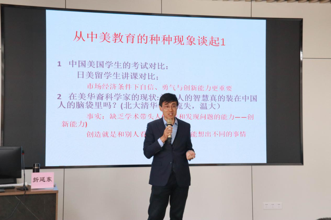 3月15日上午,温州大学折延东教授给全体学员带来《中美教育比较——教师教育改革趋势》的专题讲座。折教授从自己亲身经历的所思所想为切入点,结合丰富的人生阅历,站在专家的视角下向学员们阐述了中美教育的差别,并且基于对比为在座的老师梳理了当代中国课程的体系的弊端与改革的思路,呼吁大家能够从美国教育的可圈可点中结合中国教育的优势,得到最佳的效果与体验,为在座的老师对于教育改革和教师专业发展方向有了更深的思考。