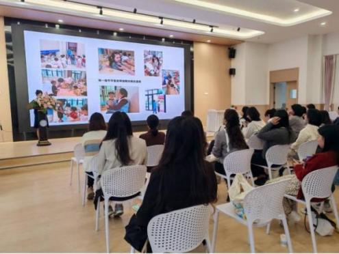 下午,研修班访问温州市第十一幼儿园双乐园区。王畅园长介绍办园思想与文化,并分享实用工具培养教师卓越思维能力。保教副主任林奇春分享《理论巧变生 实践好运用》,详细讲解《理论口袋书》用法及理论与实践结合的策略。