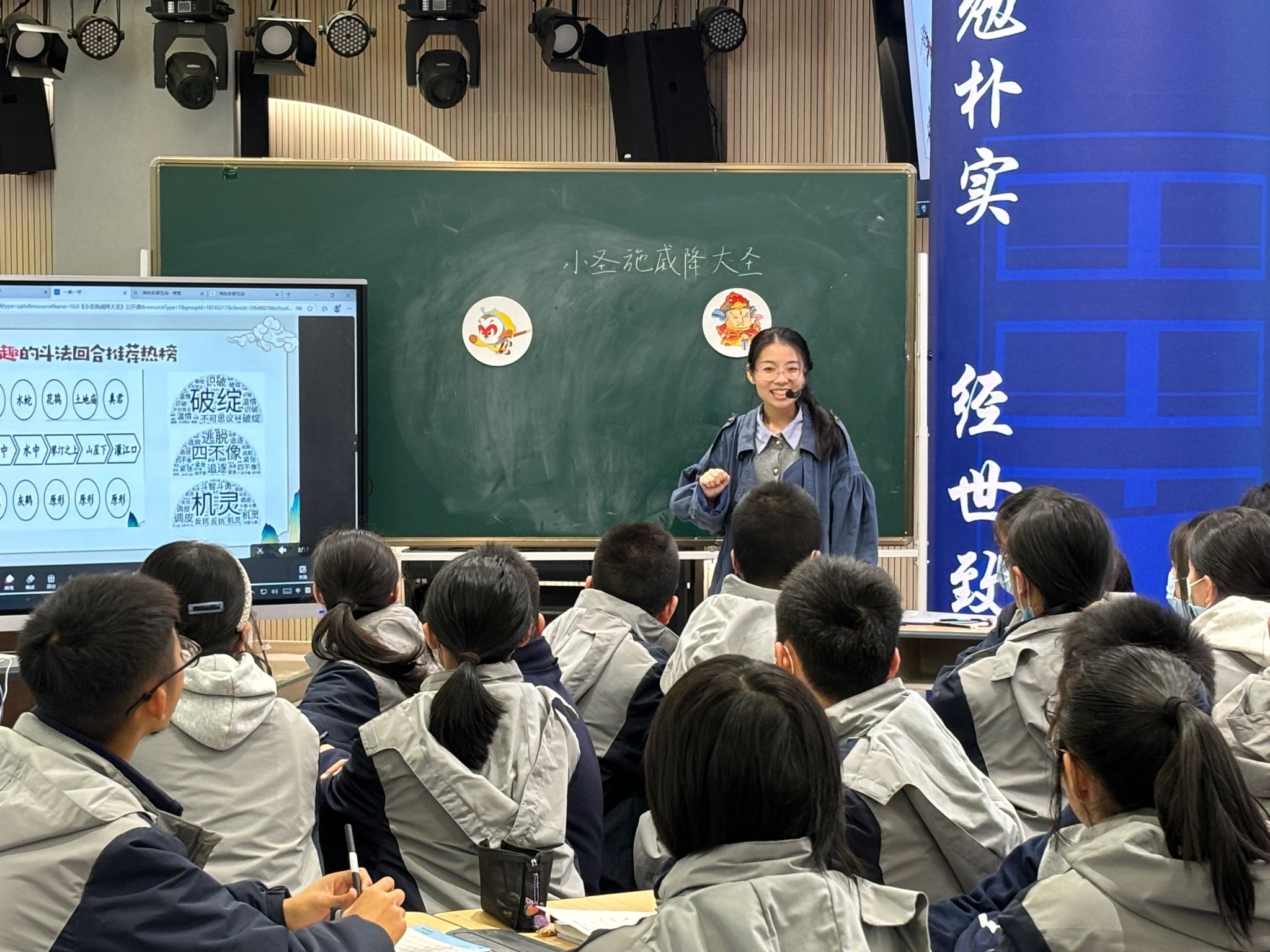 28日下午,全体参训教师前往温州市南浦实验中学锦江校区开展课堂观摩活动。刘靖靖老师带来的七年级上册语文《小圣施威降大圣》教学展示,呈现了本堂课“以文本为基、以素养为魂、以数智为翼”的教学理念。课后,老师们分组合作,就这堂课程展开了热烈讨论,深化了对语文阅读教学评一体化的认知。