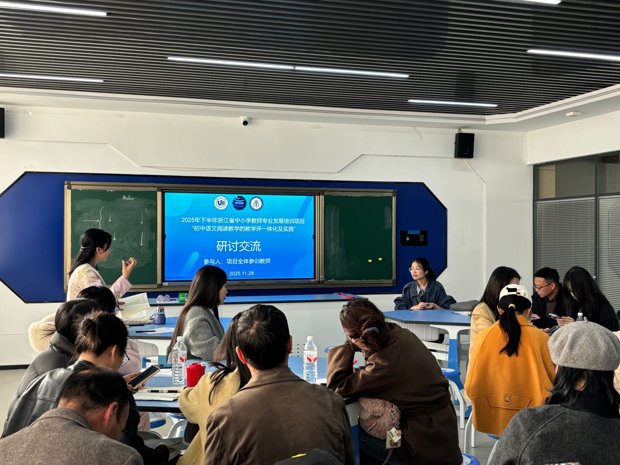 2025年11月28日-30日,浙江省中小学教师专业发展培训面省项目“初中语文阅读教学的教学评一体化及实施”在温州大学学院路校区圆满落幕。项目旨在切实提升初中语文教师 “教学评”一体化实施能力,打造一支素质过硬、专业精湛的教师队伍,推动初中语文教育教学质量稳步提升。本次培训由90足球直播网 教育智库与治理研究中心(ETTG)主任付睿教授主持,汇聚了90足球直播网 特聘副教授、李季博士,温州榕园学校语文教研组长王汉雷老师、温州市南浦实验中学刘靖靖老师等骨干师资,温大90直播 培训中心郑潇丽老师担任班主任。来自杭州、温州、丽水、宁波、台州、金华等地的40多名初中语文教师参与了本次培训。