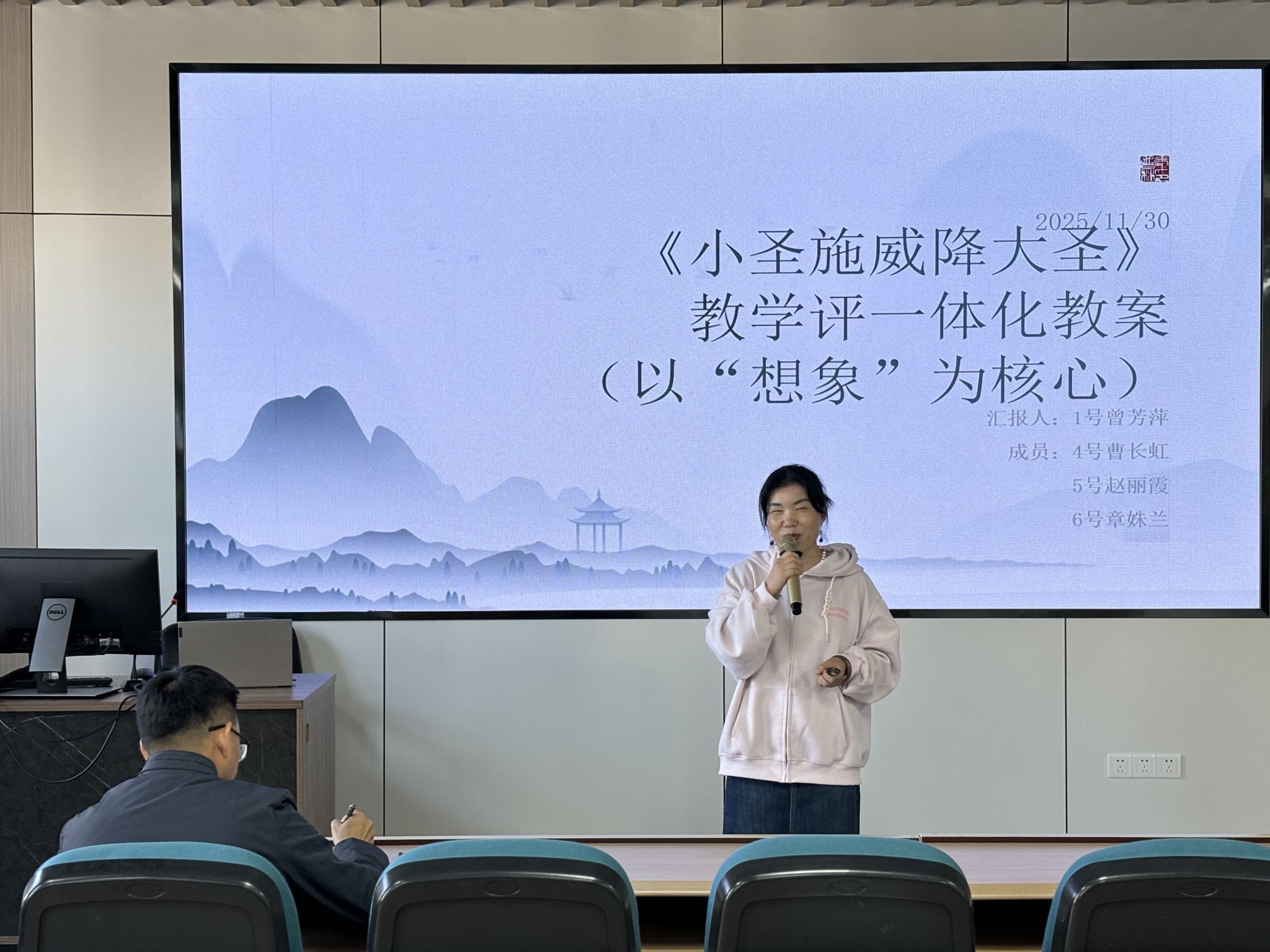 培训的最后一天,付睿教授延续第一天的课程,带领老师们就《小圣施威降大圣》的展示课开展专题研讨,并以小组形式进行基于教学评一体化的阅读教学设计实操训练。各小组通力合作、精心设计,最终顺利完成成果汇报与研讨交流。
