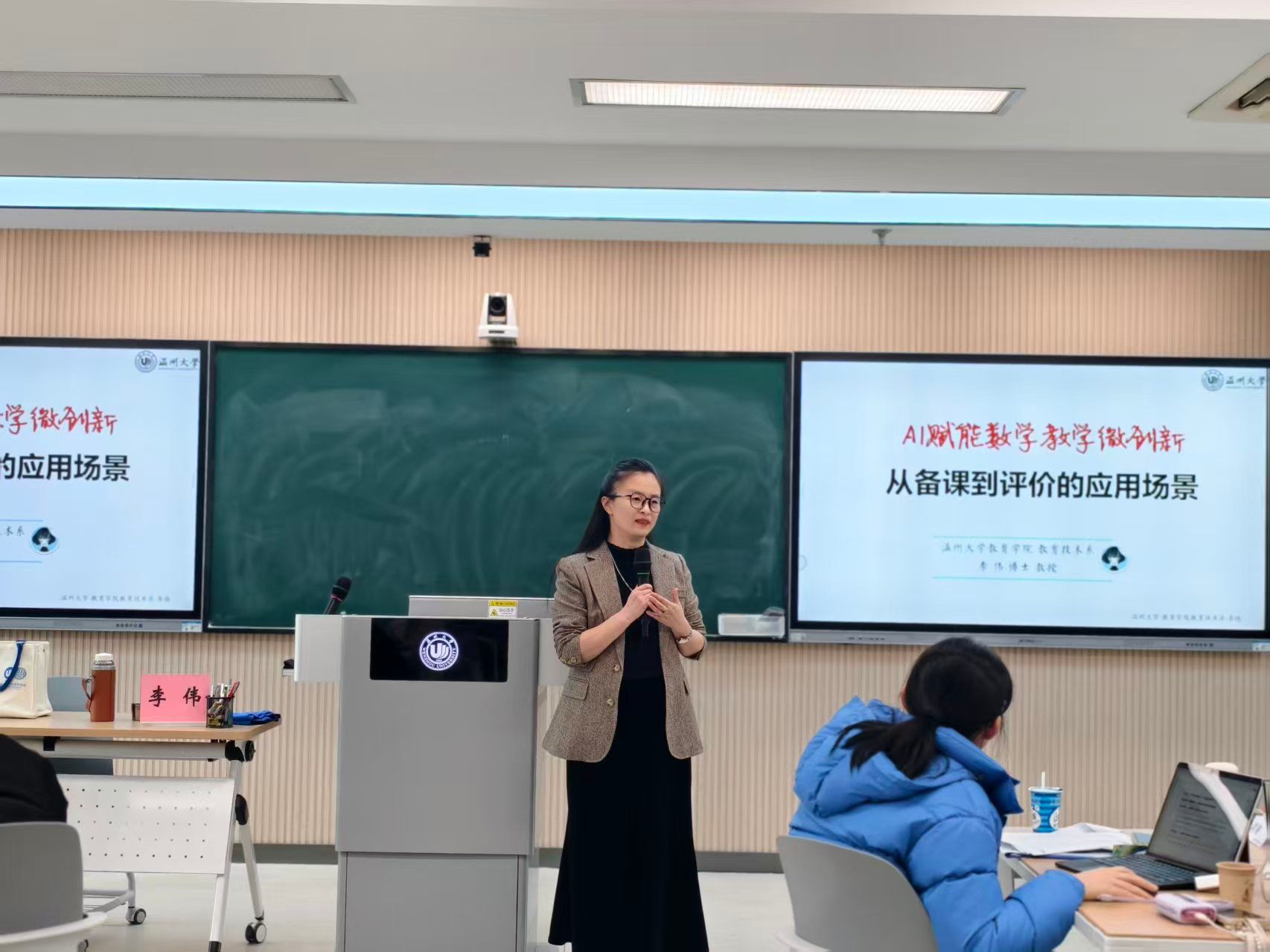 12月23日可谓是“AI知识大放送”的一天!上午,刘军副教授带来的专题讲座《AI赋能数学教学:学科精准提示词设计》让大家第一次系统性地学习如何与AI“聪明对话”。“原来提问也有这么多门道!”老师们边记笔记边感叹,仿佛发现了新大陆。