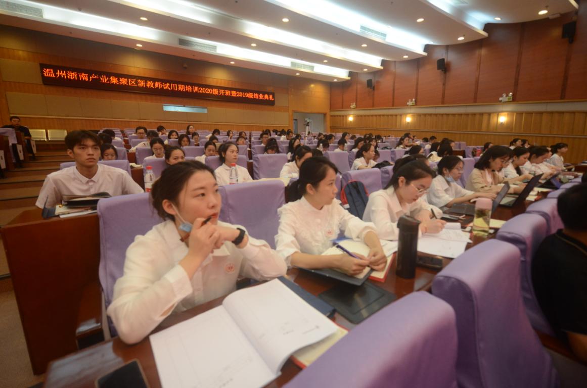 “我宣誓:履行教师神圣职责,……为中华民族伟大复兴,我愿献出全部智慧和力量!” 有一种坚定铿锵的声音在温州大学南校区图书馆报告厅久久回荡,这是温州浙南产业集聚区新教师试用期培训2020级开班暨2019级结业典礼上,集聚区新教师庄严宣誓的场景。庄重的誓言是选择,是责任,是使命更是担当!