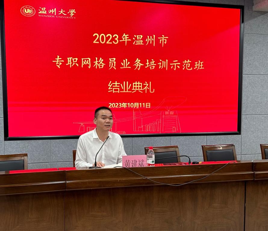 市委政法委副书记黄建斌做总结讲话。他对此次培训成果给予了充分肯定。他表示,此次培训邀请了市委政法委、市教育局、市公安局、市司法局、市卫健委、市应急管理局、市统计局、市消防救援支队和温州大学等9家部门的有关领导围绕网格中心工作进行了授课,大家学出了成效。他希望大家将这次培训的内容融会贯通,认真履职、担当作为,争取交出高分答卷。借此机会,黄书记就如何做好当前和今后一段时期的网格工作,谈了四点想法。一是不忘初心,充分珍惜我市网格建设工作已取得的成效;二是要提高认识,高站位推进全市网格治理工作;三是要直面问题,清晰认识当前网格工作中存在的短板,稳定网格员队伍,完善工作机制突出区域特色;四是要强化担当,高效率开展网格常态排查走访,树立风险意识、稳定意识,以系统思维着力提升治理水平。