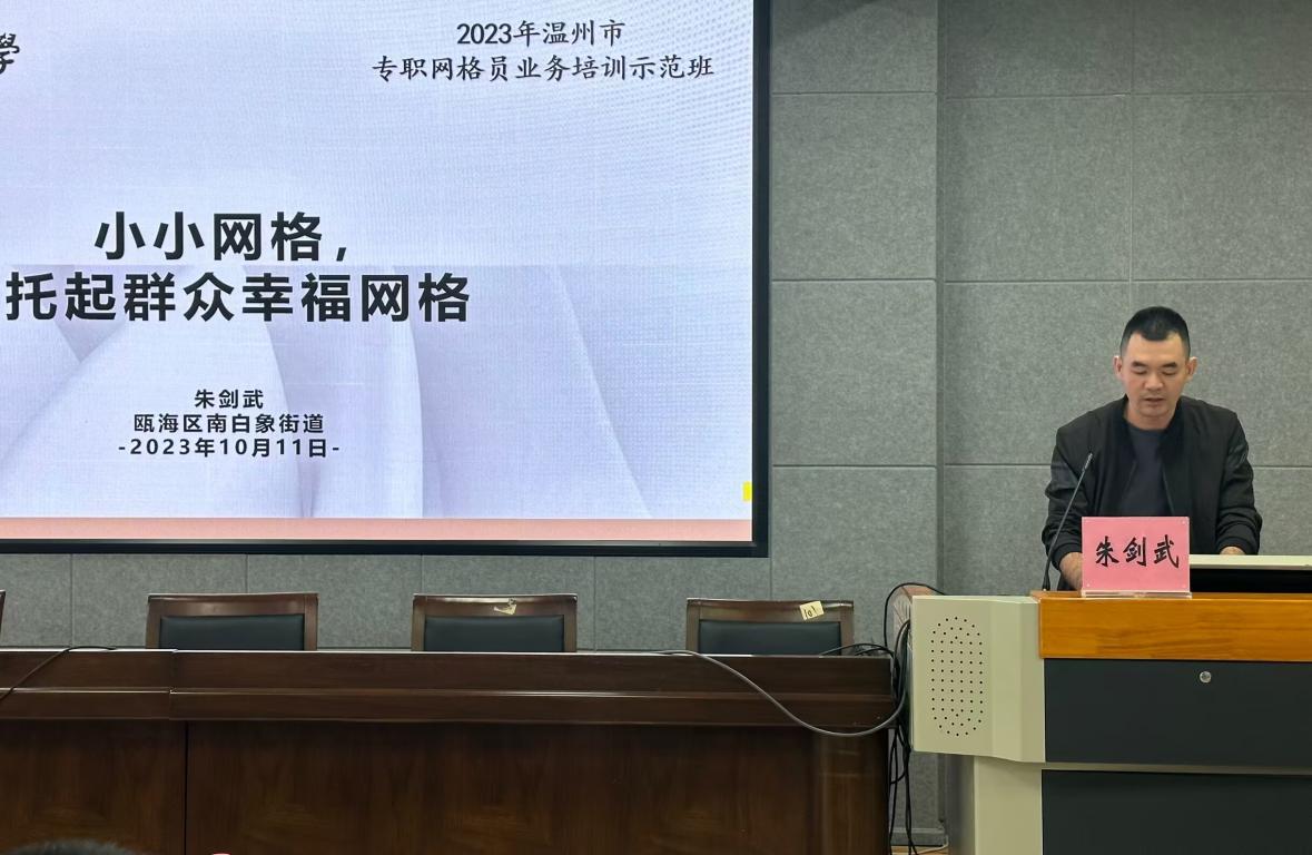 此次培训共持续3天,通过理论学习、经验分享、案例研讨等形式,集中培训,更新工作理念、指导工作实践,切实提升我市网格团队应对新形势新情况的综合素养。结业仪式上,鹿城区藤桥县网格员倪建芬、瓯海区南白象街道网格员朱剑武、洞头区东屏街道网格员张丽芬、永嘉县桥头镇网格员林郁彬、苍南县灵溪镇网格员叶怀依次分享了自身对于网络工作的思考与感受。他们纷纷表示,要在本位尽本职、细心工作、热心服务,把专职网格员的工作做精做细做好,着力提升基层群众的“幸福指数”。