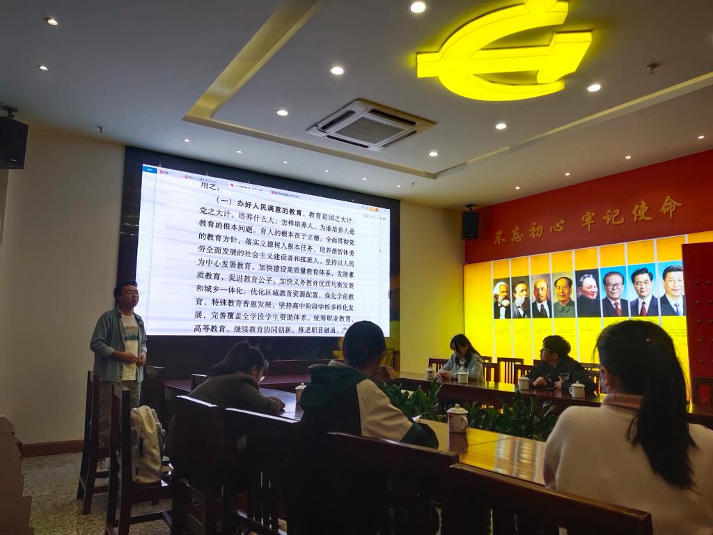 孟江龙同志带领大家围绕人民出版社出版发行的党的二十大报告全文进行学习,并对党的二十大报告中涉及到的教育元素进行了全面梳理,结合学校、学院和专业发展实际情况对其进行了深入分析与解读。