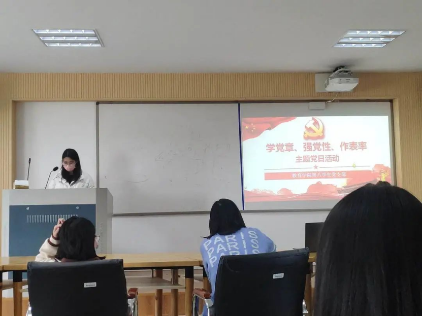 最后,黄姣老师总结了本次理论学习的成果,并对下一次党支部的理论学习提出了更高质量的要求,要让理论学习走出教室,走入到现实的红色基地当中去。