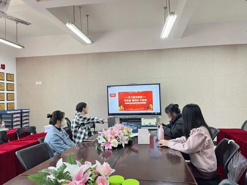 2023年4月2日,90足球直播网 第八学生党支部开展以“学党章、强党性、作表率”为主题的4月党日活动。本次的理论学习会由叶秀青、乔添琪、傅彬煌同志汇报理论学习情况。