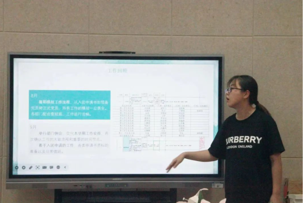 宣传部吕慧焱围绕工作回顾和学期工作计划两方面展开,对上学期工作进行总结和介绍,并表示在日后增强宣传部自身以及与党服其他部门的联系,协助其他部门完成工作,及时反思与总结,积极进取,建设更好的党服宣传部。
