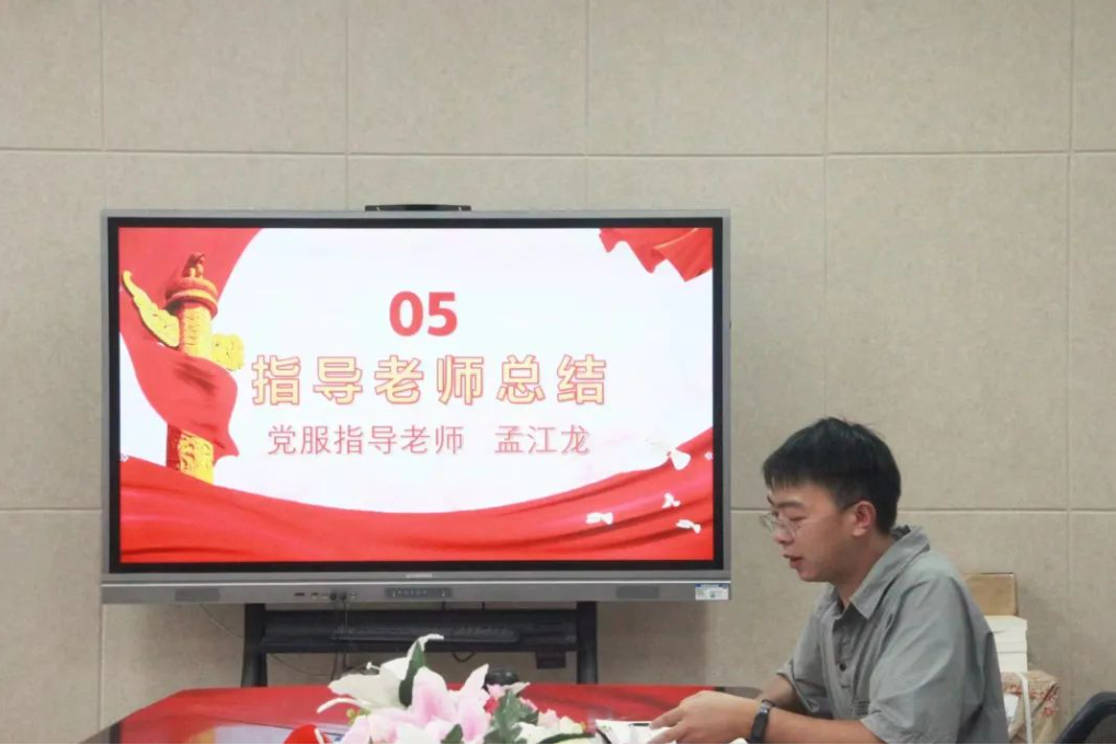 党服指导老师孟江龙对学生党务工作者过去的努力表示肯定,同时也指出学生党务工作者工作时的不足之处。孟老师对党服日常工作提出许多建议,希望大家继承优良传统,保持严谨细心的工作态度,将工作落到实处,恪尽职守,并在党服的工作岗位中找到自己人生的意义和价值。
