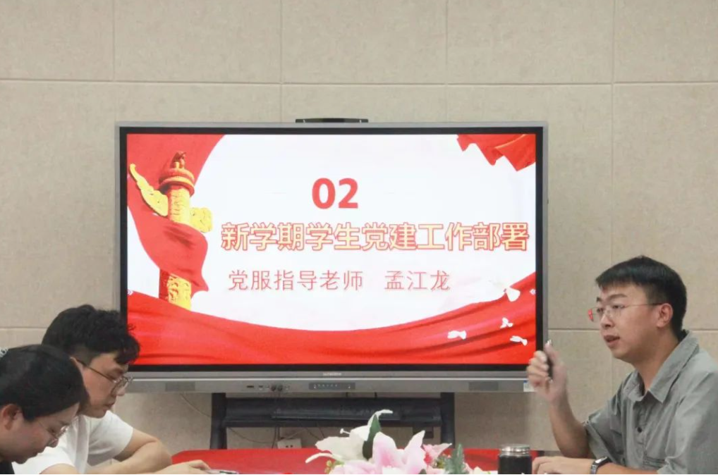 党服指导老师孟江龙老师围绕第二批学习贯彻习近平新时代中国特色社会主义思想主题教育、新生党建工作、毕业生党员转出工作、党费收缴、党课选课、党支部委员调整、学习强国的使用、党员发展、师生党支部的共建和党支部的“一部一品”建设等十项任务安排展开详细介绍。他强调,党支部和党服的各个部门之间继续加强联系和沟通,部门成员也要在实践中积累经验,不断提升自己的能力。