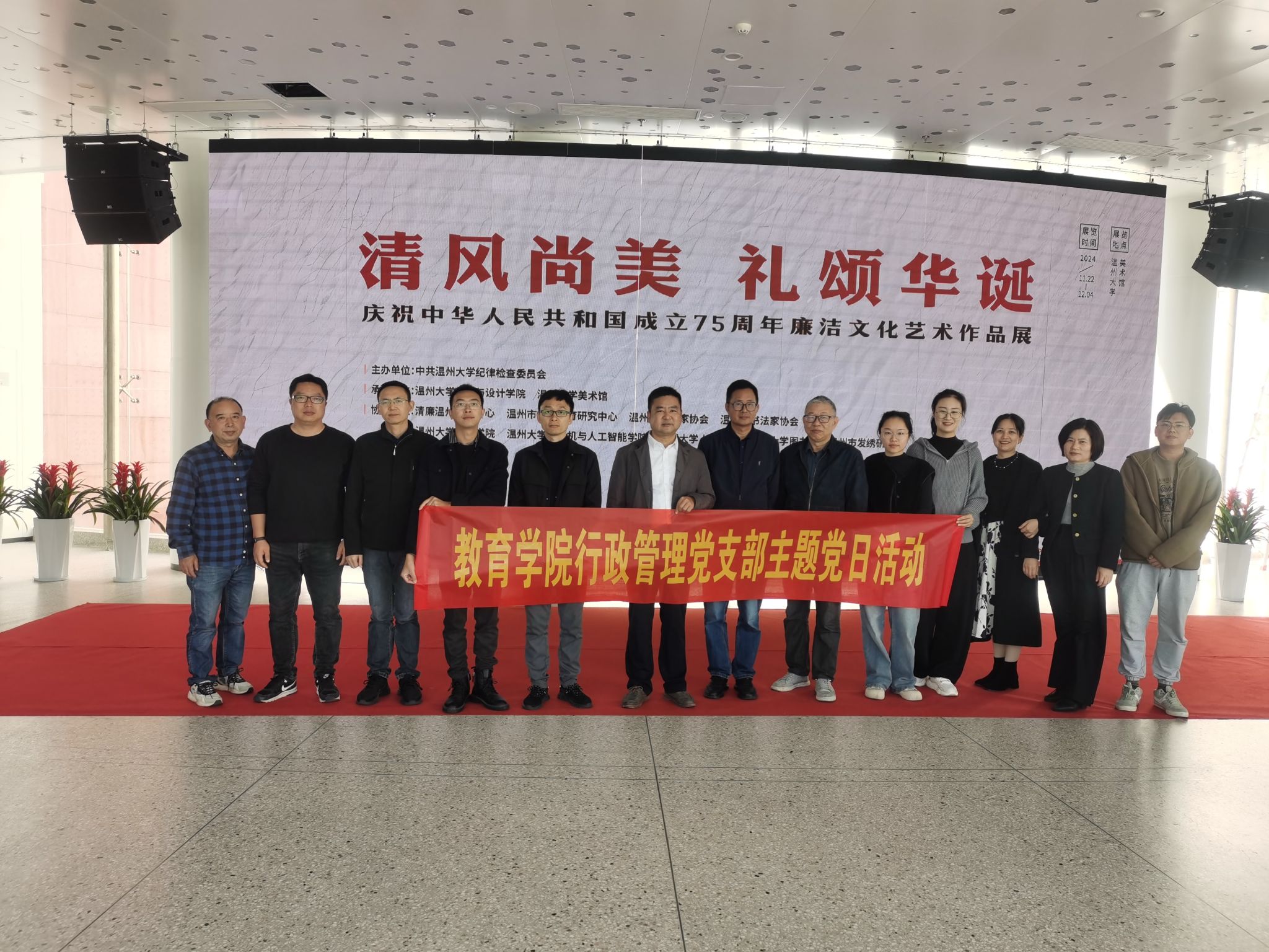 【90直播 行政管理党支部】2024年11月27日,90直播 行政管理党支部开展“筑牢师德底线,坚守育人初心”主题党日活动,分实地参观与理论学习环节。党员们参观温州大学美术馆《清风尚美 礼颂华诞》廉洁文化艺术展,支部书记章志图介绍背景与作品意义,强调廉洁对党员的重要性。理论学习环节,大家学习《习近平法治思想是全面依法治国的根本遵循》等材料,观看中央党校副校长谢春涛的专题讲座视频,并进行思想交流。陈强龙老师、孟江龙同志、薛彬鹏同志分别分享感受,此次活动兼具廉洁与党性教育意义,激励党员加强学习,为学校和学院发展贡献力量。