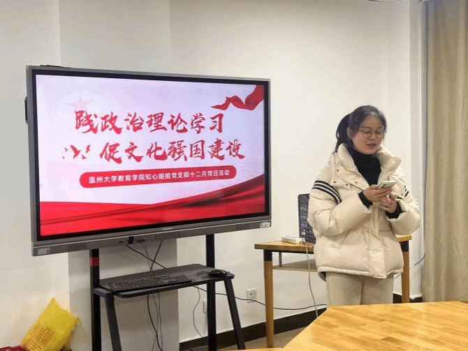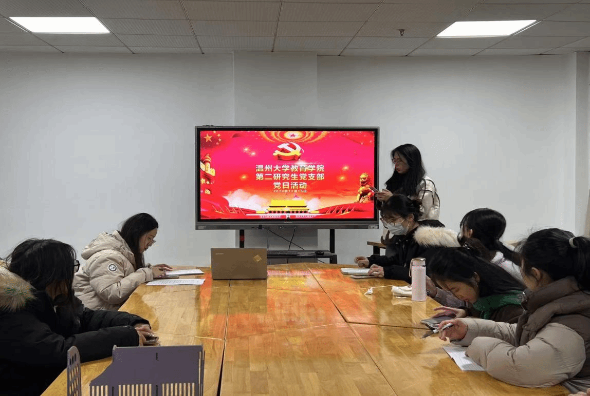 【教育学系党支部】2024年12月18日,90直播 教育系党支部在瓯8-411组织了12月党日活动。周奇书记主持会议,支部党员全员参会。周奇书记强调,高校是我国铸魂育人和宣传思想文化事业的前沿阵地,必须坚决扛起“以文弘业、以文培元、以文立心、以文铸魂”的使命担当,争做习近平文化思想的坚定信仰者、有力传播者和忠实践行者。在周奇书记的组织下,与会党员分享了温州红色英雄人物王鸣皋、吴可邦、陈再华、汪月霞等革命事迹。全体党员纷纷表示要以革命先烈为榜样,坚定理想信念,汲取奋进力量,把革命精神和文化同课程内容、社会大课堂结合起来,在理论和实践的结合中,教育引导高校学生把人生抱负和学习奋斗的具体目标同民族复兴的伟大目标结合起来。