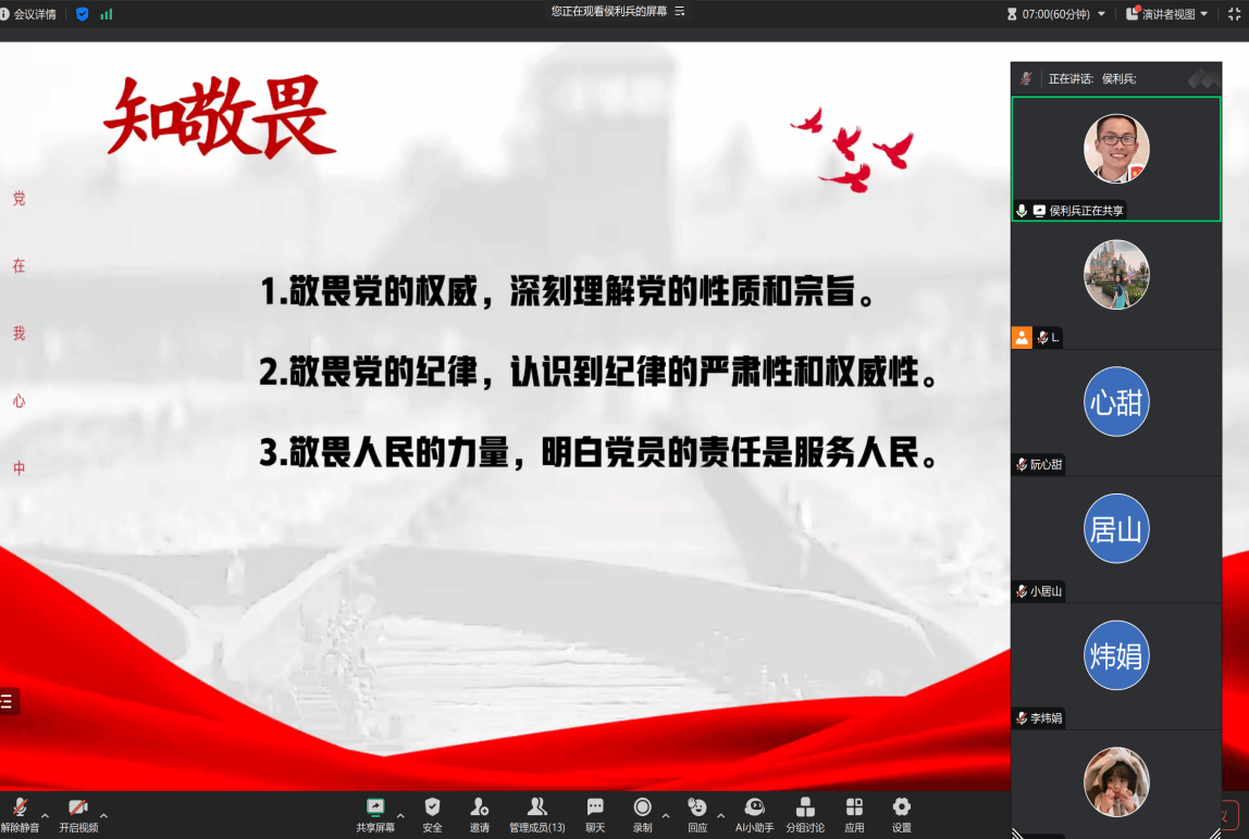【90直播 第四学生党支部】2024年12月22日,90直播 第四学生党支部为深入学习习近平总书记在2021年秋季学期中央党校(国家行政学院)中青年干部培训班开班式上的讲话:“干部一定要知敬畏、存戒惧、守底线,敬畏党、敬畏人民、敬畏法纪”,现以“如何知敬畏、存戒惧、守底线,遵守党纪党规”为主题开展12月书记上党课。支部书记侯利兵从四个方面为支部的党员同志们展开介绍:知敬畏、存戒惧、守底线、遵守党纪党规的具体行动。在聆听完书记的党课后,同志们深有感触,纷纷踊跃发表自己心中所想。赵乐鸯同志提出:作为新时代的大学生,我们从要老一辈身上汲取力量,将党的精神内化于心、外化于行。蔡淑婷同志认为:全面从严治党永远在路上,党的自我革命永远在路上。