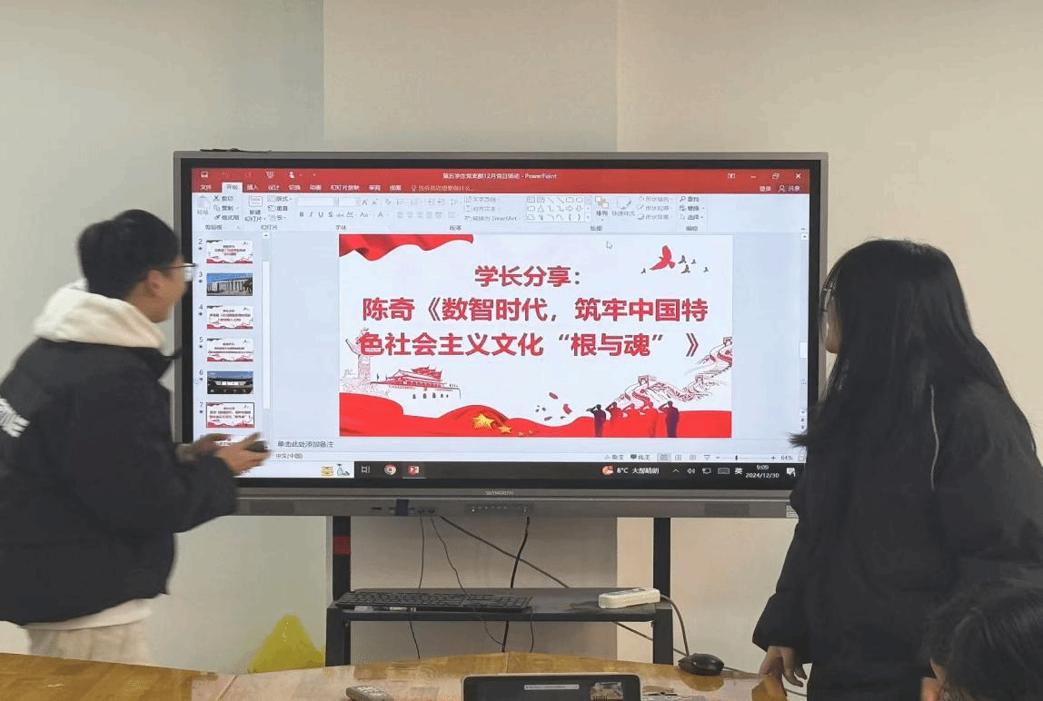 【90直播 第五学生党支部】2024年12月30日,90足球直播网 第五学生党支部组织了“深入学习习近平文化思想与实践”主题党日活动。此次活动采取视频学习、学长学习分享相结合的多元形式,由党支部书记助理高慧佳同志主持,第五学生党支部的全体党员均参与了此次活动。活动伊始,全体党员共同观看了“习言道 | 习近平这样谈‘文化强国’”的视频资料。随后,缪涵雷学长围绕《文化强国思想如何融入教学育人工作》这一主题进行了分享汇报。接着,全体党员共同观看“锚定建成文化强国战略目标 不断发展新时代中国特色社会主义文化”视频,最后,陈奇学长以《数智时代,筑牢中国特色社会主义文化“根与魂”》为主题进行分享。活动结束后,党员们进行总结交流。