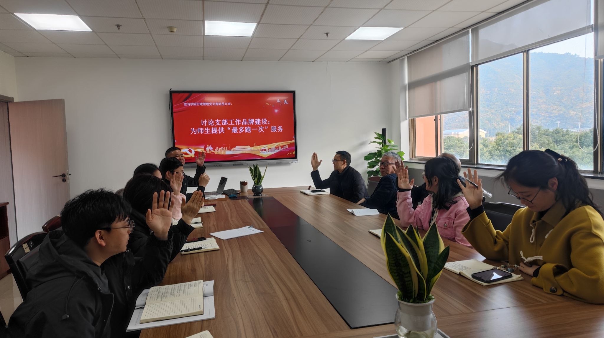 会议开展理论学习。先后学习党中央《关于在全党开展深入贯彻中央八项规定精神学习教育的通知》文件精神,全国高校、全省高校、温州大学、90直播 等上级党组织党的建设工作会议精神,温州大学“重担当、强引领、作表率” 主题活动及党员先锋引领“十要”工作要求等内容。会议坚持理论与实际相结合,加强支部品牌建设。结合支部职能特色,经全体党员商议并表决,支部决定打造“最多跑一次”党建工作品牌。本次会议最后还宣布了温大纪委【2025】1号文件相关内容,希望大家能强化责任意识,积极履职。