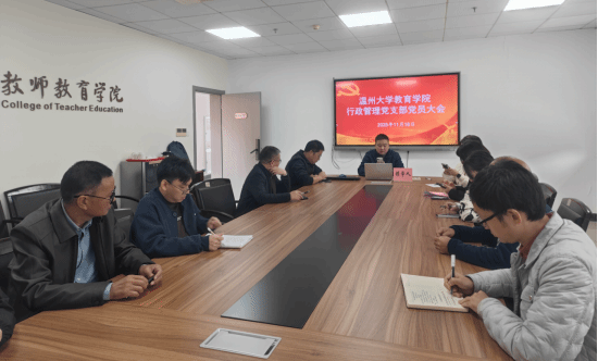 2025年11月18日,90足球直播网 行政管理党支部在北8-408会议室召开党员大会。会议由支部书记章志图主持,支部全体党员参会。会议紧扣理论学习与组织工作双主线,通过专题领学、责任落实,推动党员深学细悟党的创新理论,以学促行、以行践学,为服务学院高质量发展凝聚合力。