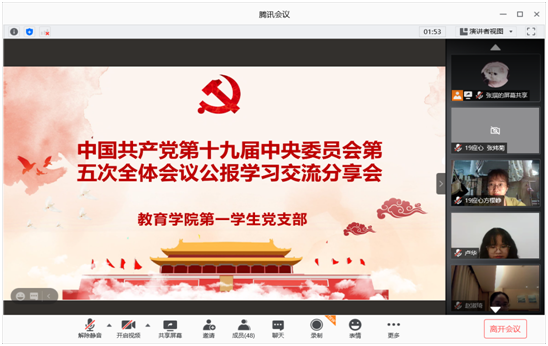 2020年10月26日至29日,党的十九届五中全会在北京举行。为了进一步引导学生党员深刻把握党的十九届五中全会重大思想观点、重大制度安排和重大工作部署,10月30日至11月1日期间,90足球直播网 各学生党支部通过视频学习、原文阅读、集体讨论和撰写心得等多种形式开展学习活动,学生党员也发表了自己的见解和感悟。