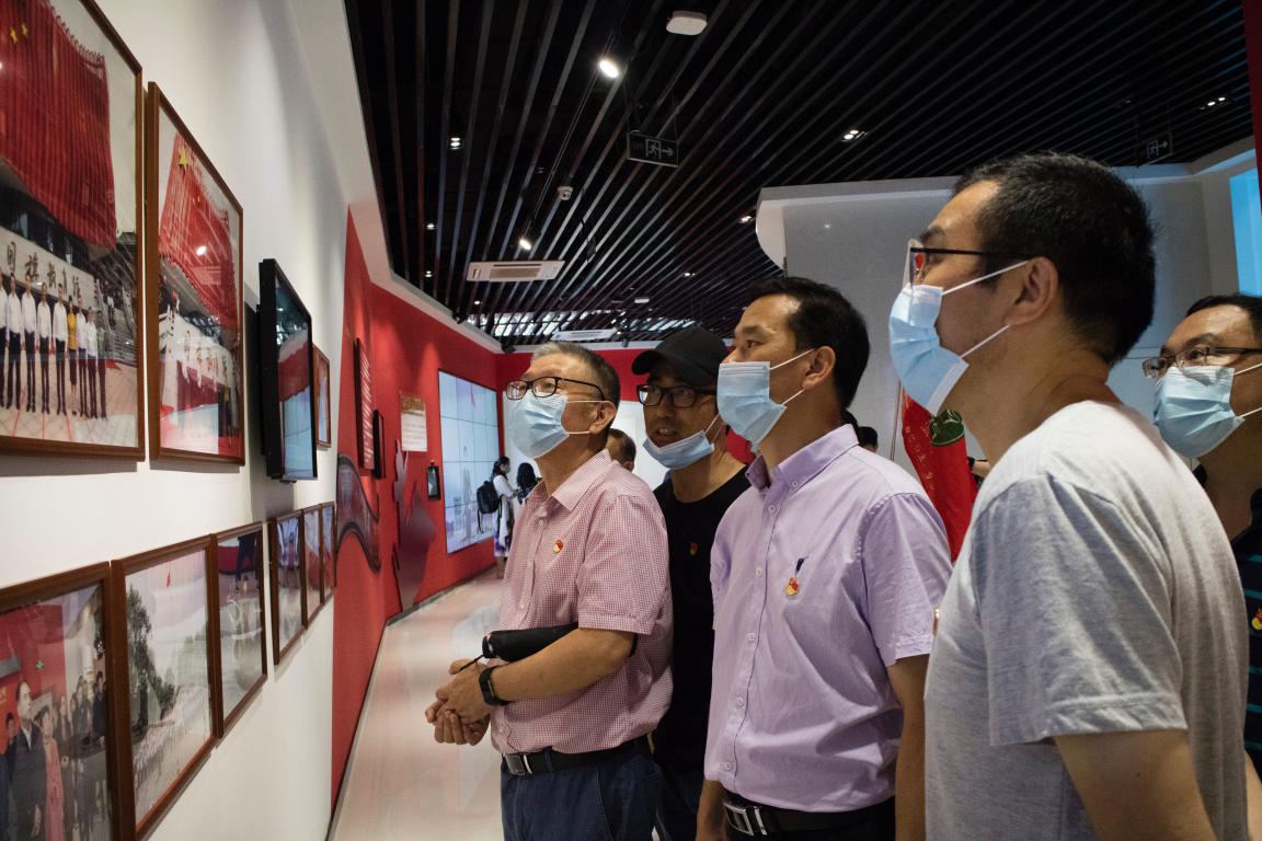 随后,大家一同前往国旗知识厅,一起详细了解国旗的诞生历程,学习国旗的相关知识,边参观边交流,借助木活字国歌墙灯光秀、真人体感互动、亲身体验红旗制作、3D换脸合影等多元化高科技手段,让全体党员仿佛身临其境一般见证了祖国崛起的历史性时刻,共同回顾中国共产党一路走来的艰辛历程以及辉煌成就,重温中国共产党波澜壮阔的历程。