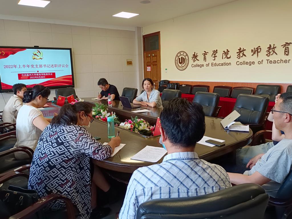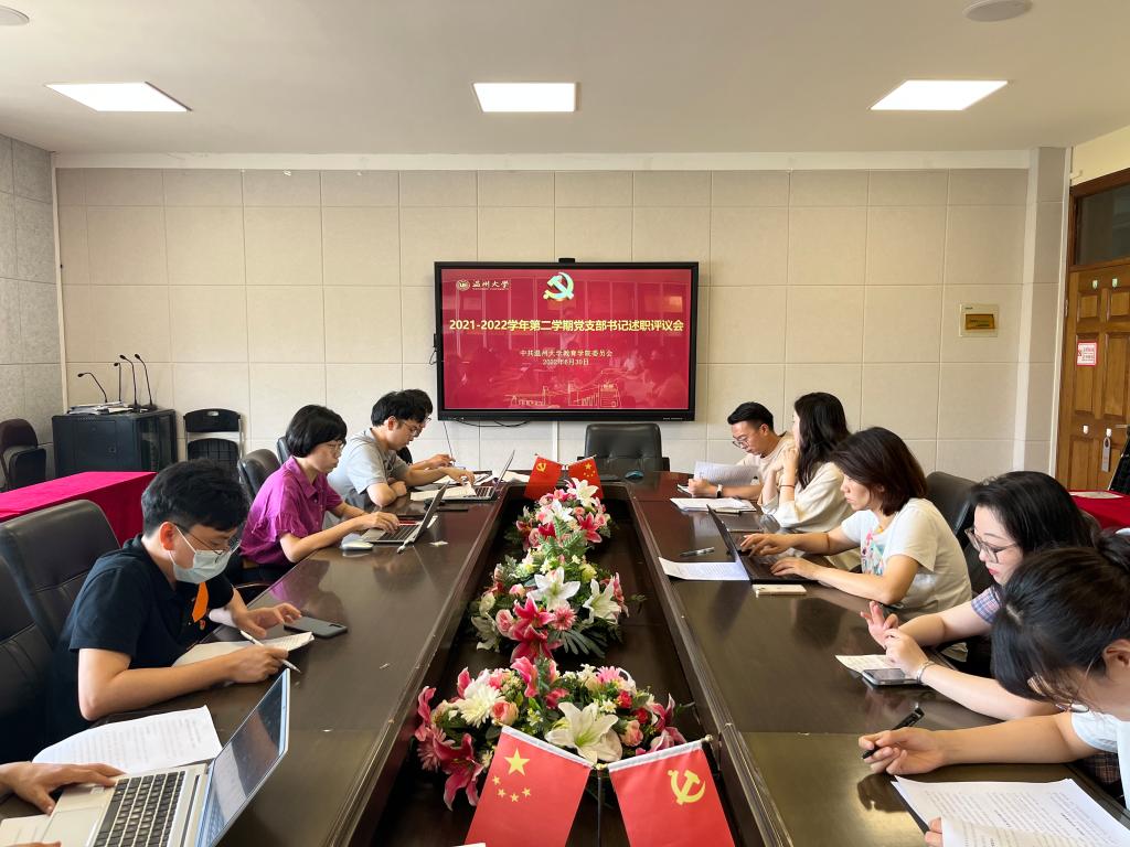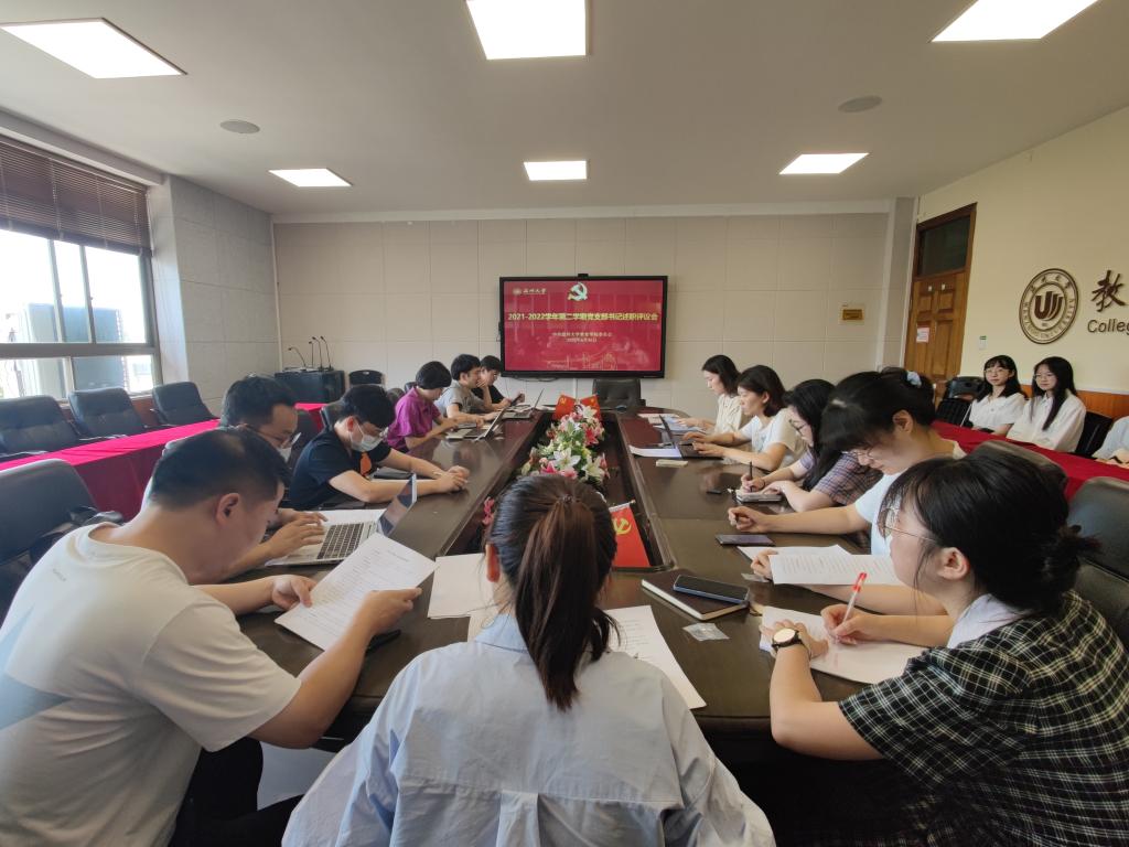 每半年一次的党支部书记述职已是惯例,既是党支部书记的工作述职,同时也是党支部间互相交流学习的良好契机。近日,90足球直播网 2022年上半年党支部书记述职评议会在9A410举行,学院党委副书记兼纪委书记彭小媚、党委副书记章园园、19个党支部的书记及委员、党建办公室成员、学生党员代表等参加会议。会议由彭小媚主持。