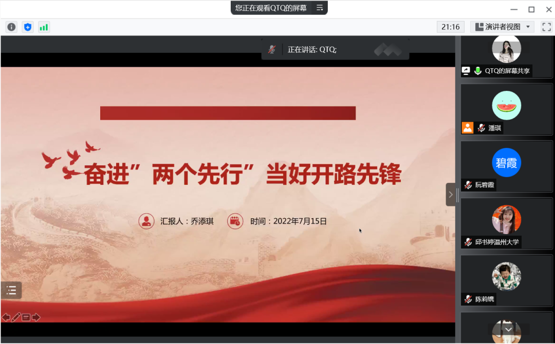 2022年7月15日,90直播 第八学生党支部于线上以微党课的形式进行了七月理论学习活动。