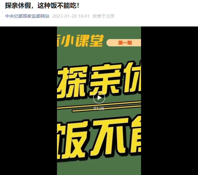 2023年5月23日,学院开展廉政警示教育,组织学院党政领导班子观看廉政微视频《探亲休假,这种饭不能吃!》。