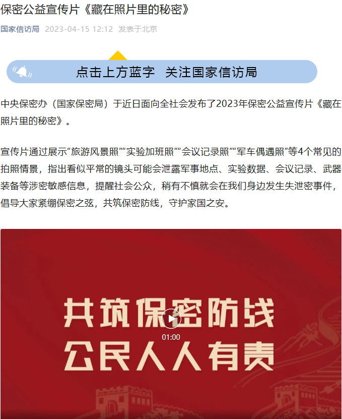 2023年4月12日,学院开展保密安全教育,组织全体教职工观看保密宣传视频《藏在照片里的秘密》。