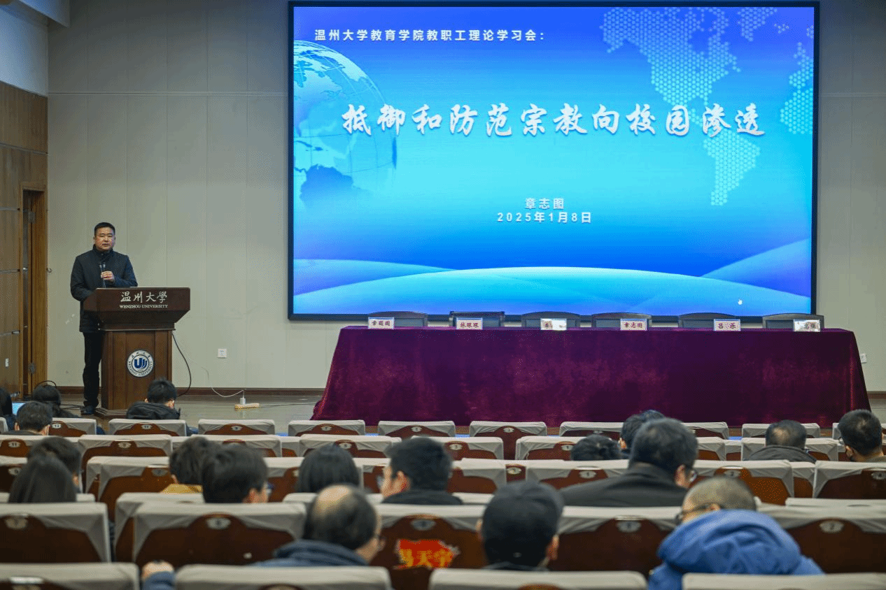 2025年1月8日,学院开展教职工理论学习,章志图副书记作《抵御和防范宗教向校园渗透》专题报告。他结合实例详细阐述党的宗教政策与法律法规,向广大教职工讲清“两个不得”“五个严禁”,即任何人不得利用宗教进行妨碍国家教育制度的活动,任何组织和个人不得在学校进行宗教活动,严禁在学校传播宗教思想、发展教徒,严禁在学校设立宗教活动场所、举行宗教活动,严禁师生建立宗教团体和组织,严禁师生在校内外参加或组织参加宗教活动,严禁穿戴宗教服饰、佩戴宗教标志。他强调,宗教信仰自由是我国宪法赋予公民的基本权利,宗教活动应当在合法范围内进行,要坚守教育与宗教相分离原则,坚决抵御和防范宗教向校园渗透,确保校园成为传播知识、培养人才的净土。