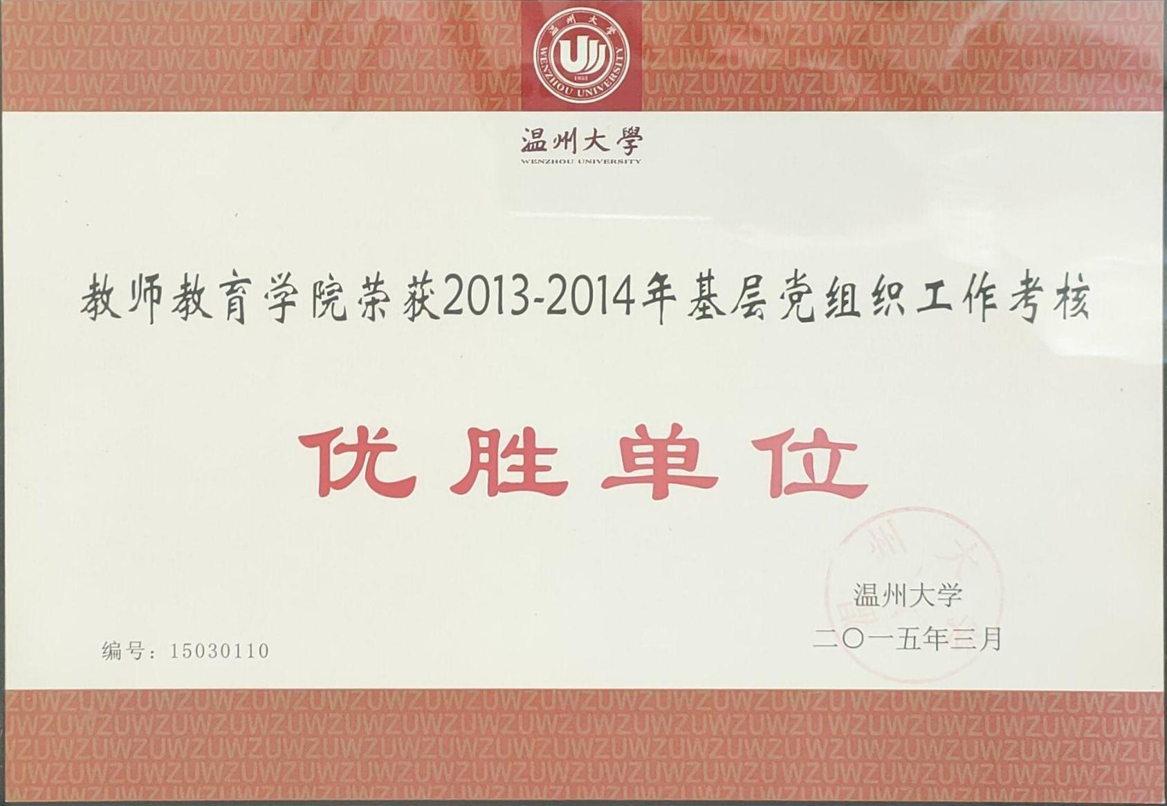 2013-2014年基层党组织工作考核优胜单位(2015-3)