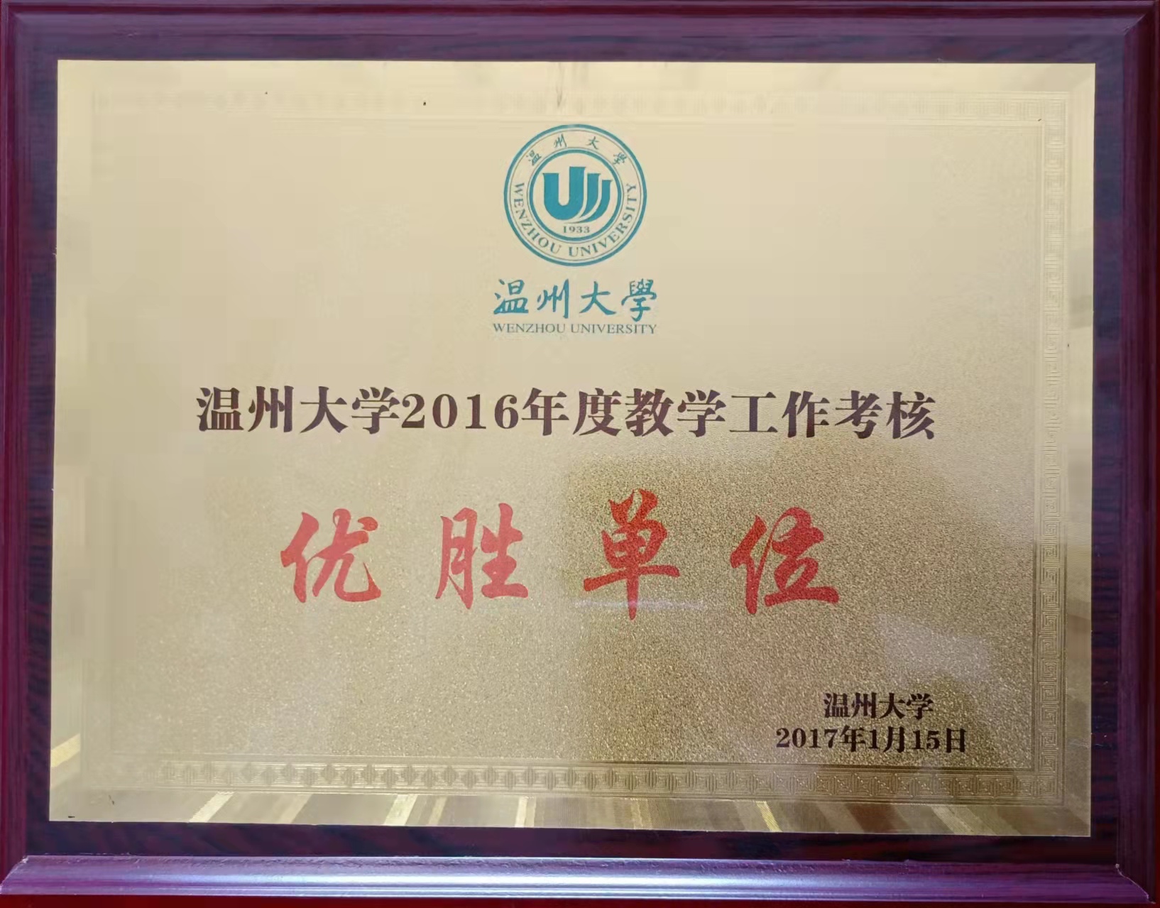温州大学2016年度教学工作考核优胜单位(2017-1-15)