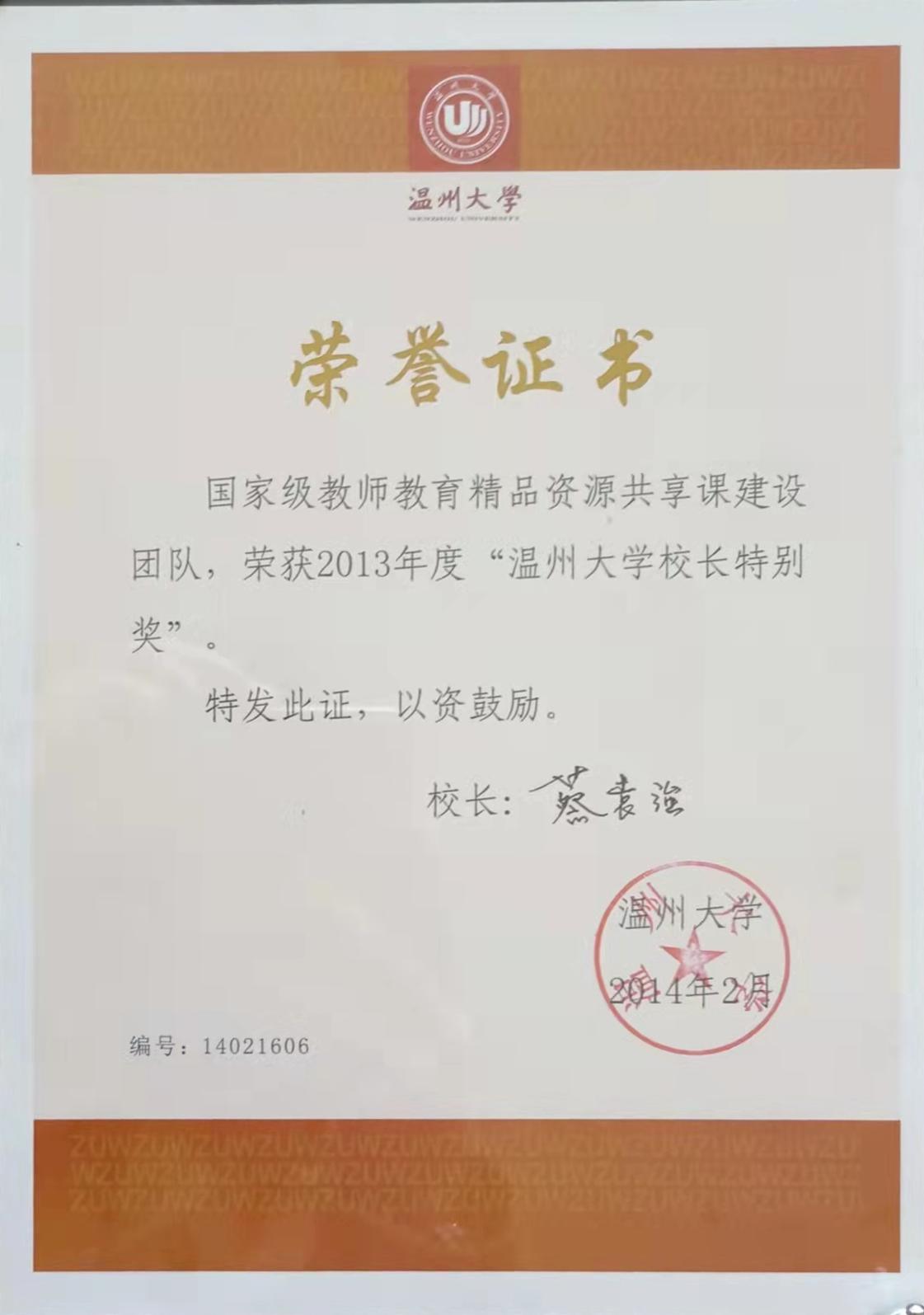温州大学校长特别奖(2014-2)