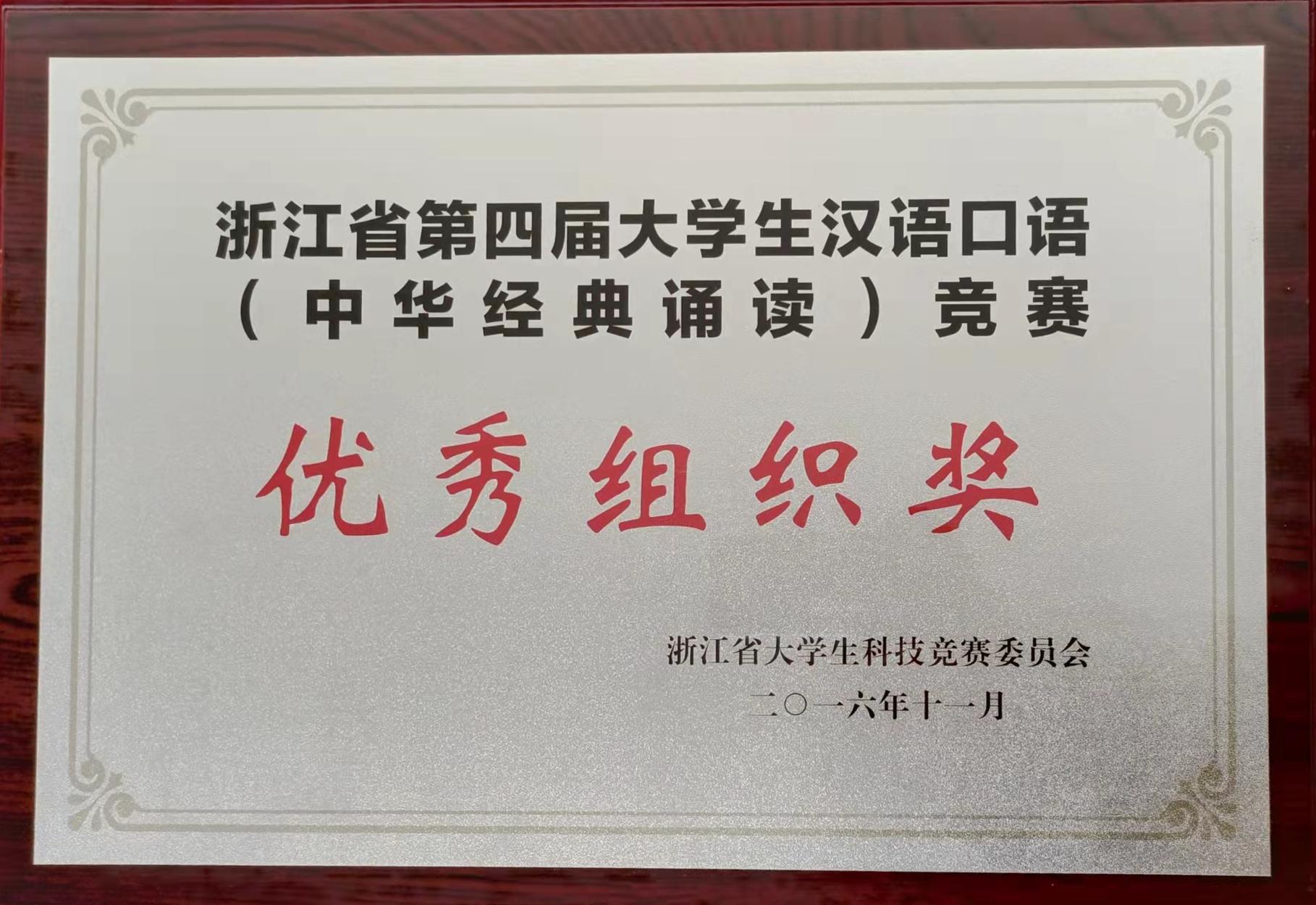 浙江省第四届大学生汉语口语(中华经典诵读)竞赛优秀组织奖(2016-11)