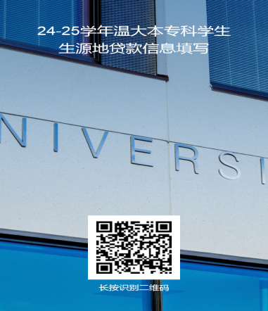 根据国家开发银行生源地信用助学贷款手续办理的要求,学生在生源地办理完信用助学贷款后,需要高校在限定时间内进行网上回执录入,请各学院通知办理国开行生源地贷款的新老生,务必在9月20日前在网上完成《24-25学年温大本专科学生生源地贷款信息填写》,二维码如下: