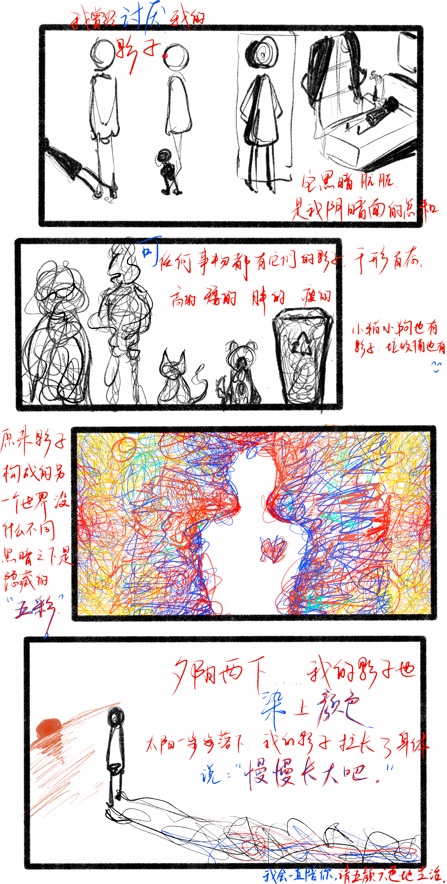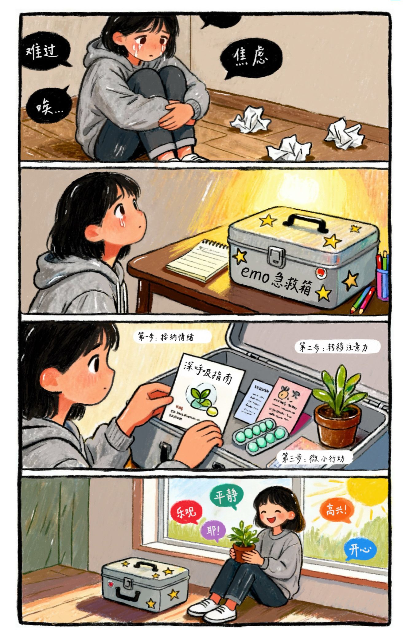 自大赛启动以来,得到了全校学子的热烈响应和积极参与,共征集到参赛作品100余份。参赛作品紧扣“积极心理”核心主题,同学们以细腻的笔触、生动的画面和鲜活的情节,将大学生活中的成长感悟、情绪变化、人际互动等心理体验转化为直观的漫画语言,内容涵盖自我接纳、压力调适、友谊滋养、逐梦成长等多个维度,兼具思想性与艺术性。商学院许左右同学创作的《影子》将目光聚焦在大学生的复杂的自我意识和成长上。90直播 研究生钱嘉仪则通过《emo急救箱》讲情绪急救手段具象化,将情绪调节方法可视化,倡导同学们学会用小步骤疏导情绪,搭建心理支持的“急救站”,重视对自己情绪的关照。