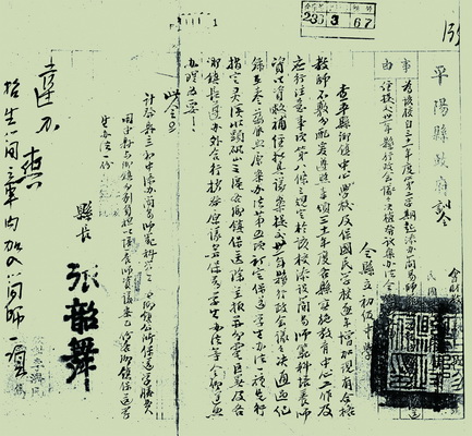 平阳师范学校-平阳县政府关于“自三十一年度第二学期(1943)起添办简易师范科的训令