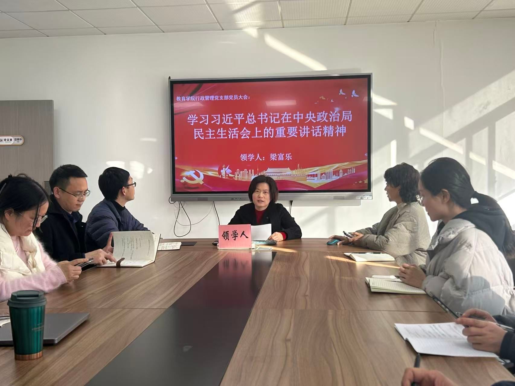 随后,梁富乐同志领学了习近平总书记在中央政治局民主生活会上的重要讲话精神。她结合党纪学习教育的成果,引导党员们对照检视自己的言行,深化党性分析,进一步提高政治觉悟和党性修养。