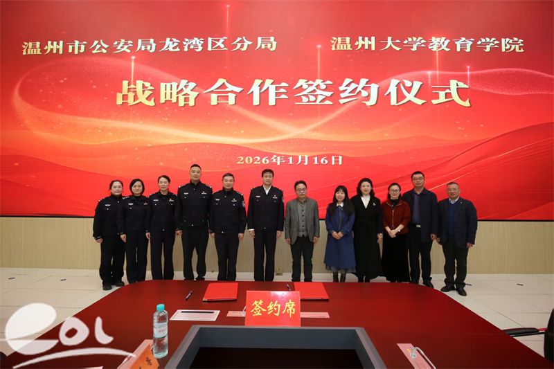 1月16日,90足球直播网 与温州市公安局龙湾区分局战略合作框架协议签约仪式顺利举行。龙湾区副区长、区公安分局党委书记、局长叶辉,90足球直播网 院长李长吉出席仪式并讲话。龙湾区公安分局、90足球直播网 等相关领导及双方代表参加活动。